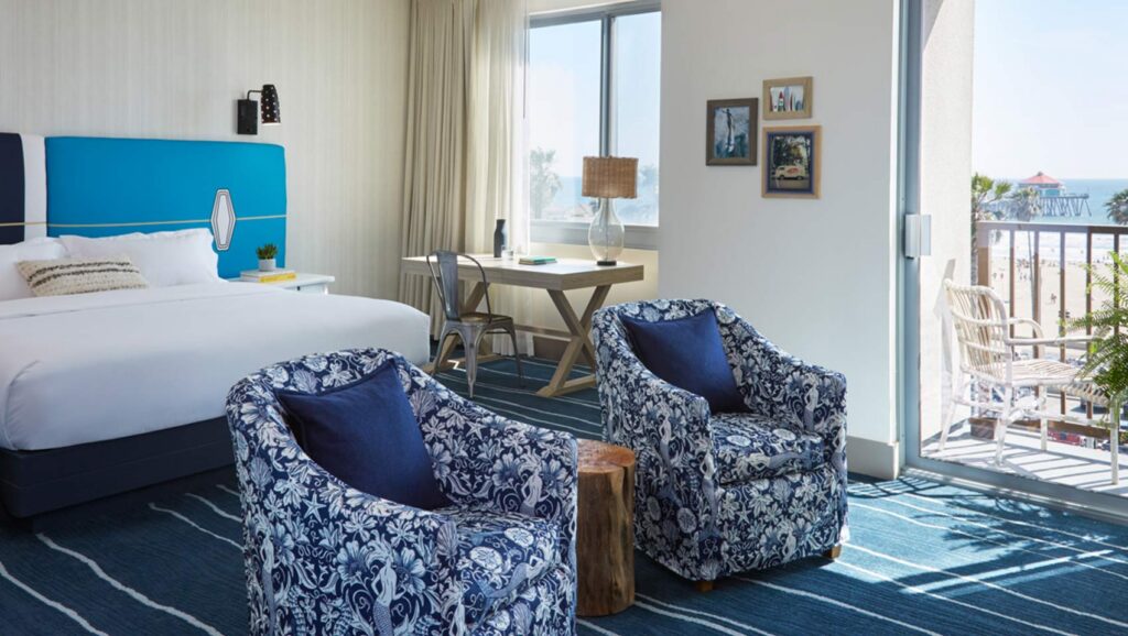 The Kimpton Shorebreak Resort, situated in Huntington Beach, California, exemplifies coastal luxury and sophistication. This elegant oceanfront property is acclaimed for its contemporary design, seamlessly integrating relaxed beach aesthetics with upscale amenities. Located mere steps from the iconic Huntington Beach Pier and the lively Main Street, the Kimpton Shorebreak Resort offers convenient access to surfing, shopping, and dining, making it an ideal destination for a unique beachside experience. Los Angeles International Airport is less than an hour's drive from the hotel.