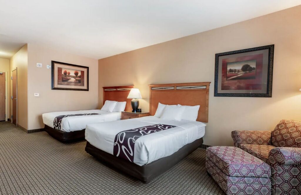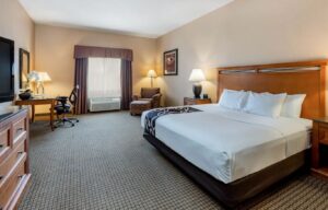 Each of the guestrooms are decorated in warm tones while offering amenities such as pillow-top beds, flat-screen televisions, microwaves, mini-refrigerators, and coffee makers. All bathrooms feature granite and travertine tops, and are equipped wth bathroom products. Complimentary WiFi is available in all guestrooms and throughout the hotel. Executive Suites are also available offering additional space and added amenities.