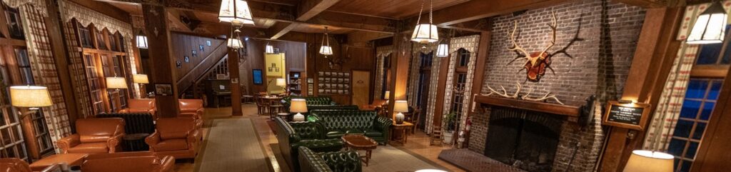 Set within picturesque Olympic National Forest on the pretty southwest shore of Lake Quinault and just three hours from Seattle, Lake Quinault Lodge is a rustic, grand lodge. Built and designed by Robert Reamer in 1926, in a rustic style reminiscent of Reamer's work at the Old Faithful Inn in Yellowstone National Park, it is a notable example of a rustic wilderness lodging, suited to its woodland environment on the southern side of the Olympic Mountains.