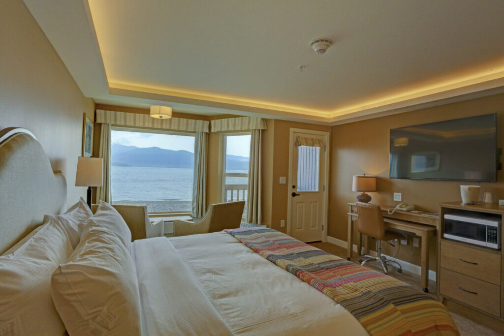 Located in Homer, perched on the beach at the tip of the famous Homer Spit, Lands End Hotel immerses you in the natural paradise of Kachemak Bay. View whales and sea otters right outside your window or shorebirds as they migrate the shoreline. Wake up to the sounds of the surf and the eagle’s antics. View sunrises and stunning vistas of the Kenai Mountains from your private deck.