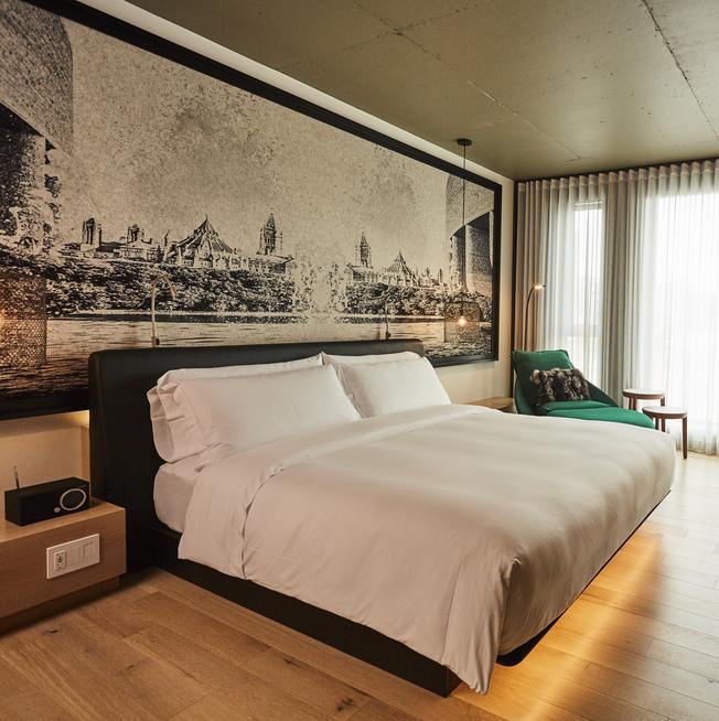 Savour the hotel’s artful design, with ample yet serene lighting, a combination of raw and soft finishes in natural hues and fibres. All rooms feature unique art, Egyptian cotton linen, goose feather pillows, coffee-maker, clock radio with Bluetooth, mini-bar and in-room safe. Bathrooms are wonderful too, featuring Molton Brown products, cotton bathrobes and thick towels. Spacious suites with separate living areas are also available.
