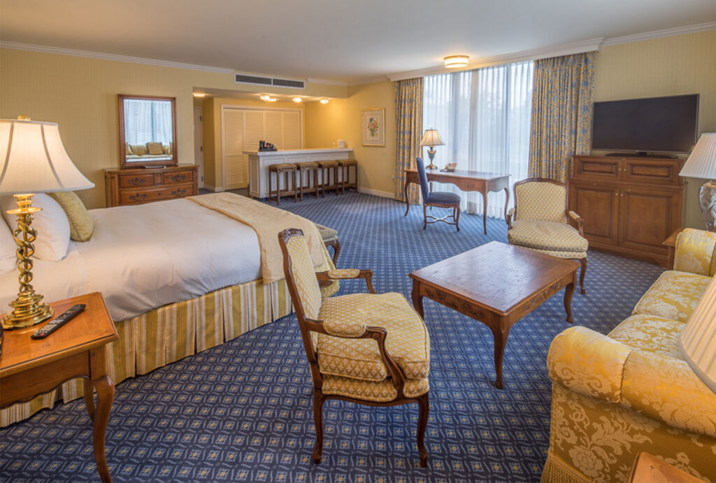The welcoming campus-style design offers spacious guestrooms featuring comfortable and luxurious furnishings known for their spaciousness, comfort, and western charm. Nestled amidst beautifully landscaped grounds with views of either the pool or golf course accompanied by 37″ flat-screen televisions, refrigerator, safety deposit box, down pillows and other luxury amenities. There is also an Executive Suite for maximum indulgence