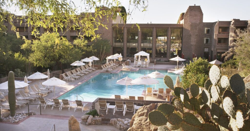 Nestled in the Catalina Mountain foothills, high above the city of Tucson, this 93-acre property is a unique and beautiful resort. At Loews Ventana Canyon, you can walk out the back doors and step into the natural beauty of the Sonoran desert. Inspired by nature and the surrounding saguaro cactus, architect John Hill constructed the resort to blend into the southwestern landscape.
