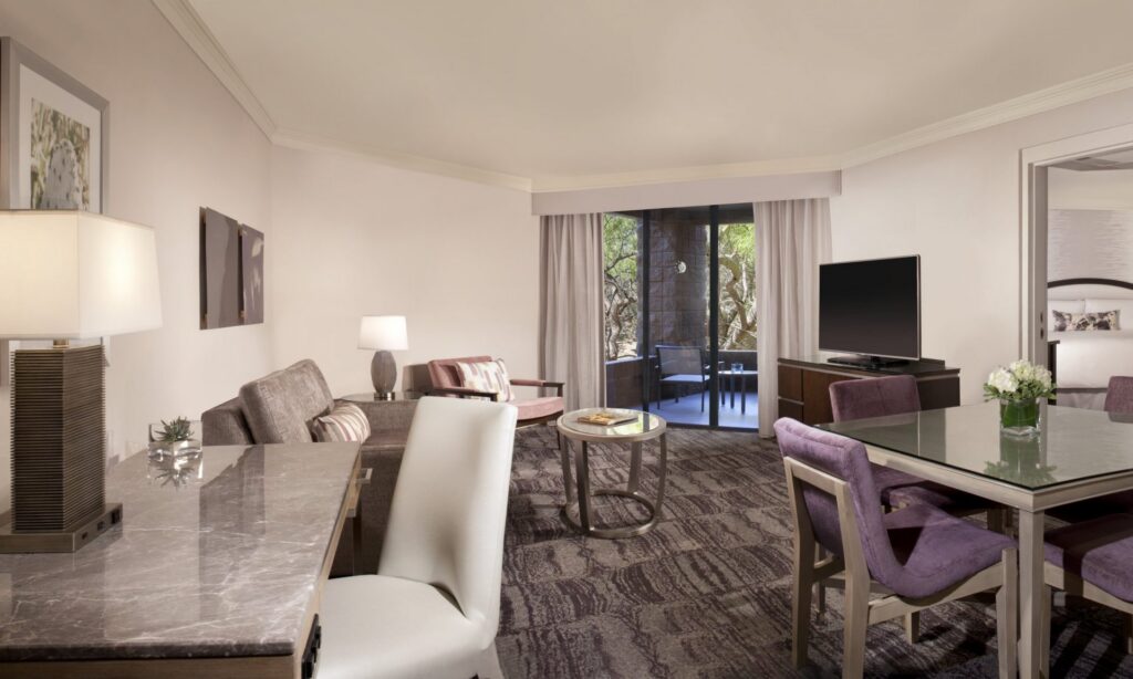 Sunset-inspired colour schemes wash through the 398 rooms and suites. Modern, contemporary furnishings grace the spacious rooms, and bathrooms offer double size bath tubs. Enjoy sunrise or sunset over the mountains on your private patio or balcony.