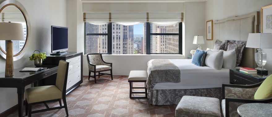 This legendary property uniquely blends the original mansion built in 1882 with a 55 storey tower, built almost 100 years later. The 909 rooms and suites strike the perfect balance between elegance and comfort with fine furnishings and modern amenities. Flat screen televisions, in-room safes and marble bathrooms with plush bathrobes and luxurious bath amenities grace every room.