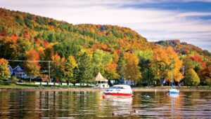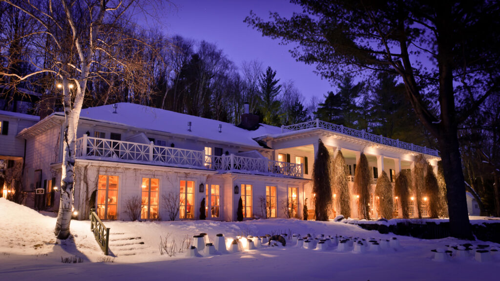 Manoir Hovey is nestled on the shore of Lake Massawippi, just outside the picturesque village of North Hatley in the Eastern Townships of Quebec. Montreal is just 86 miles and Quebec City a two and a half hour drive.