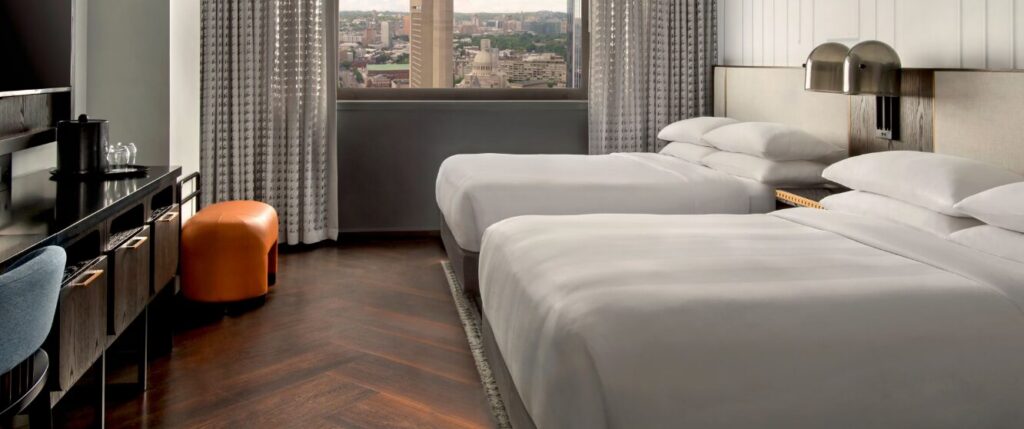 Each of the 1,097 guestrooms and 47 suites has been designed to be fresh, bright and comfortable. Marriott’s signature Revive Beds offer pillow-top mattresses, fine linens, custom duvets and fluffy pillows for a wonderful night’s sleep. All rooms are air-conditioned and feature a 37″ flat screen television and coffee-maker.