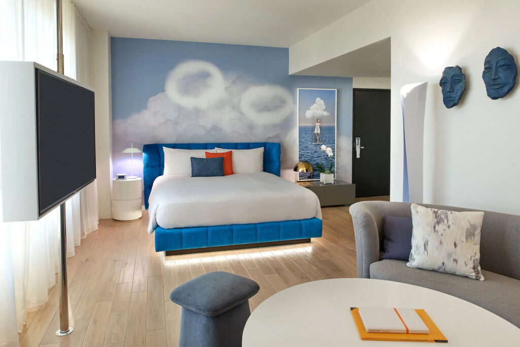This striking, contemporary hotel fuses the beauty of California with the comforts of home. From arrival, through the signature 30ft mahogany door, to the glamorous lobby and into the elegantly appointed guestrooms, the Mondrian epitomises modern living. Accommodations combine subtly textured wallpaper with beautiful custom-designed furnishings in striking colours, creating an inviting living space. Amenities include a flat screen television, stylish bamboo floors, 300-thread-count cotton linens, a wet-bar and desk area.