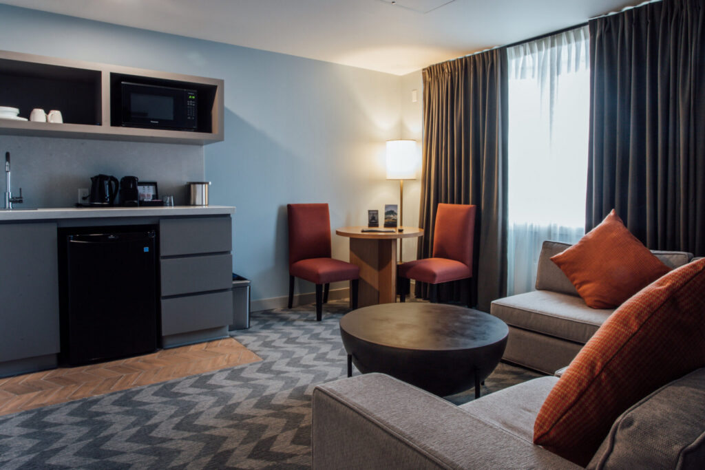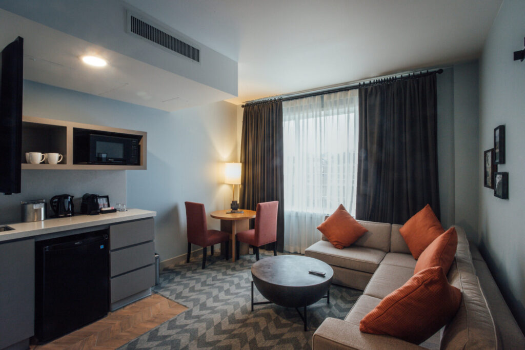 Mount Royal Hotel seamlessly blends a heritage mountain influence with modern interior design. You’ll find contemporary Canadian twists on a classic design in the rooms of this historic hotel. All offer complimentary high speed internet, flat screen televisions, USB charge stations and mini fridges. Heritage Rooms, located in the Cascade Building, are the smallest rooms, yet well-appointed, featuring either one king or two queen signature plush beds. Centennial Rooms are more spacious, with partial views of Banff or the surrounding mountain ranges. For an unobstructed view of Banff Avenue or Tunnel Mountain select a Centennial View Room. Junior Suites capture a small slice of natural grandeur and are designed to give you a defined living space and bedroom, as well as un-obstructed views of Tunnel Mountain.