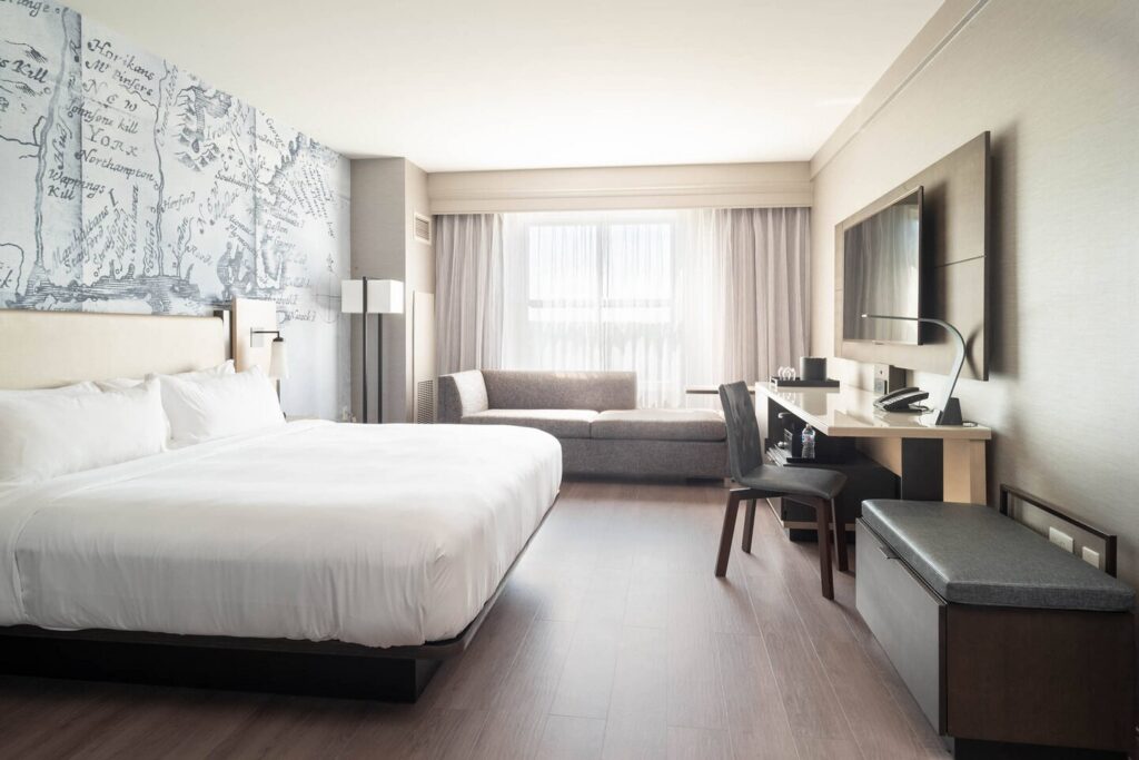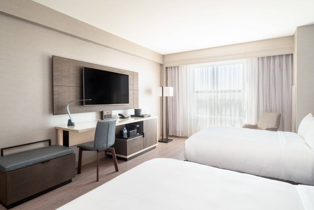 Fresh and bright, guestrooms are contemporary in style and provide either king beds or two queen beds. Flat screen televisions, coffee makers and Revive Beds complete with luxurious linens and feather pillows are standard in all 285 guestrooms.