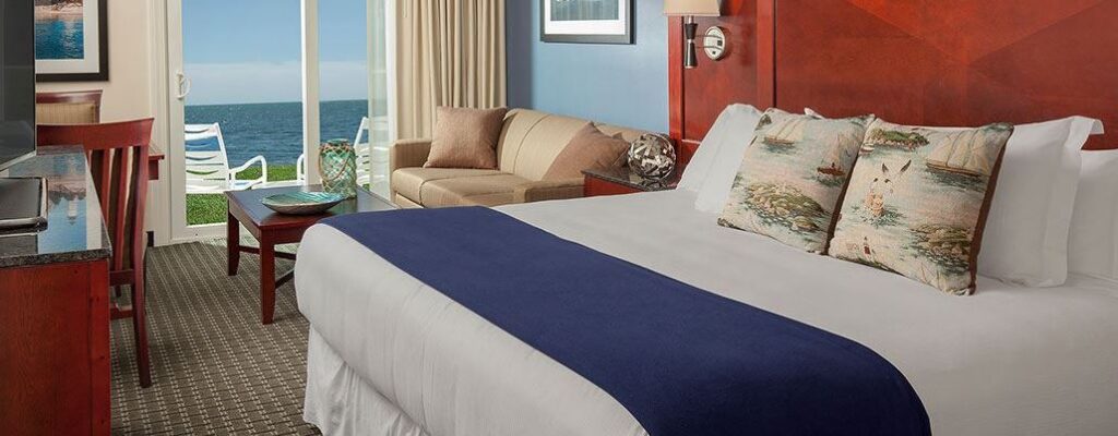 Guestrooms and suites at the Ocean Mist feature custom furniture and a contemporary New England decor of beige and blue tones. Amenities in all rooms include kitchenettes with refrigerators, microwaves, flat-screen televisions, safety deposit boxes, iron with ironing board, coffee maker and bathrooms with luxurious bath amenities.