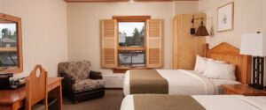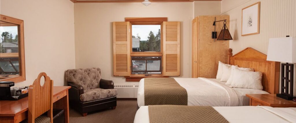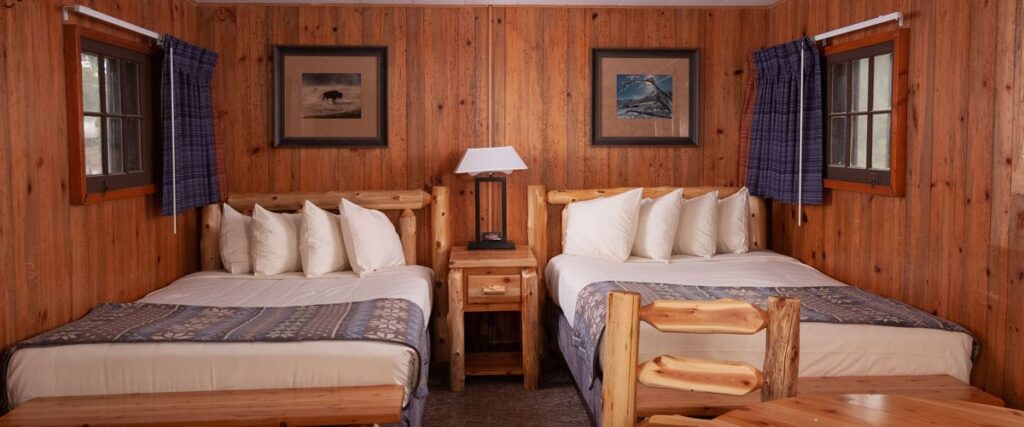 The lodge rooms at Old Faithful Snow Lodge are charming and rustic; featuring wood interiors. Each room offers lodge-style furnishings in addition to a coffee maker and hairdryer. You can also choose a Western Cabin, giving you extra living space. For something a little more simplistic, why not choose a Frontier Cabin; a duplex-style cabin with two double beds and a private bathroom featuring a shower (no baths in this category).