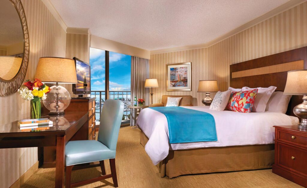 475 Classic Deluxe, Luxury, Premier and Club guestrooms and Executive suites are furnished in seaside colours of blue and red, with dark cherry wood accents. Rooms include a flatscreen television, work desk and views of the marina, bay or U.S.S. Lexington. Every room at Omni Corpus Christi Hotel includes a balcony.