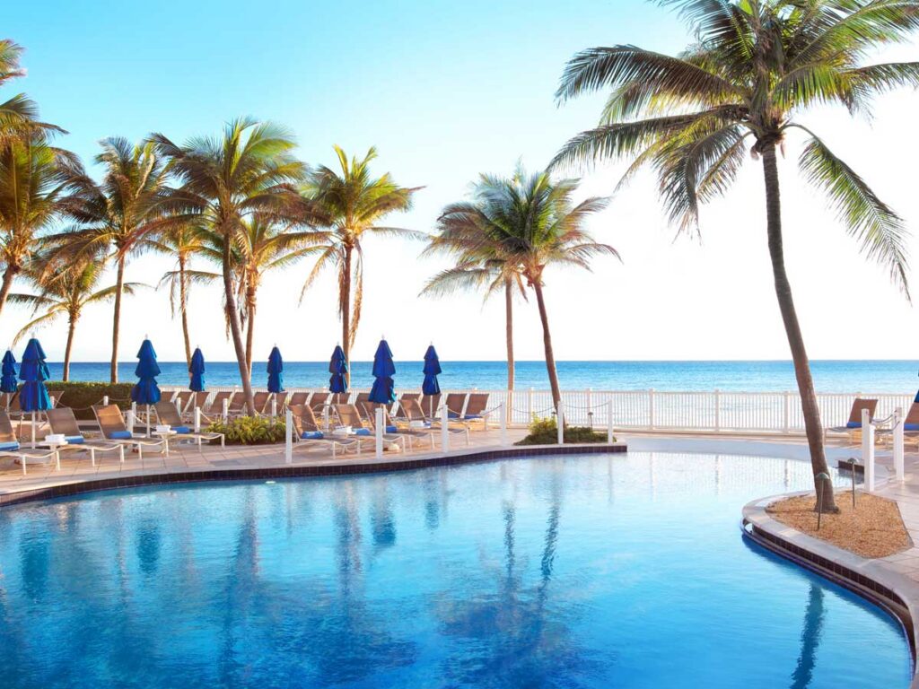 Sitting directly on the Atlantic Ocean, Pelican Grand Beach Resort boasts breathtaking views and instantly surrounds guests with a sense of old Florida grandeur. This 500-foot private beach resort is the perfect setting for families, groups, or a romantic getaway. Fort Lauderdale International Airport is less than 30 minutes away while Miami International Airport is just over an hour by car.