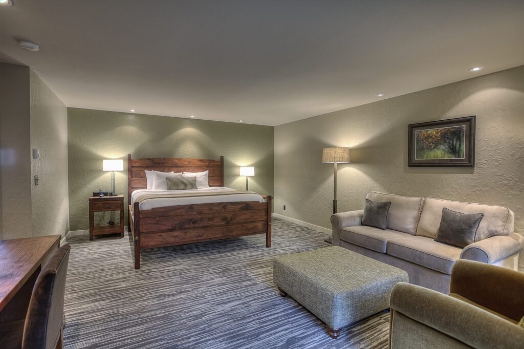 The 205 thoughtfully appointed guestrooms at Salishan Coastal Lodge are designed with comfort, relaxation, and modern convenience in mind. Each room features a warm, rustic elegance that reflects the natural beauty of the Oregon coast, complemented by contemporary touches to elevate your stay. Guests can enjoy a range of amenities, including a refrigerator, MP3-compatible clock radio, a Keurig coffee maker stocked with local roasts, and spa-inspired bathroom essentials. Many rooms also feature private balconies or patios that invite the fresh coastal breeze and offer stunning views of the surrounding forest, bay, or golf course