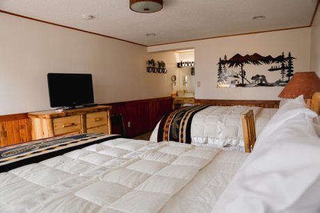 Saratoga Hot Springs Resort offers a range of comfortable accommodations designed to complement its natural, relaxing setting. Guests can choose from well-appointed rooms, suites, and cabins, all featuring cosy furnishings, modern amenities, and soothing views of the river or surrounding mountains.