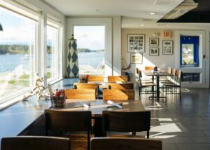 A selection of rooms and suites are scattered between the Main Lodge, Harbour Village Inns, and The Lighthouse. Each accommodation is individually decorated, but a strong nautical theme of blues and red runs throughout. All rooms feature pillow-top mattresses, flat-screen televisions, and wireless internet. Benefits of choosing an upgraded room include ocean views, a fireplace, and a balcony or patio.