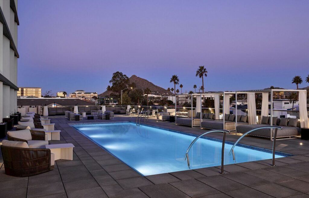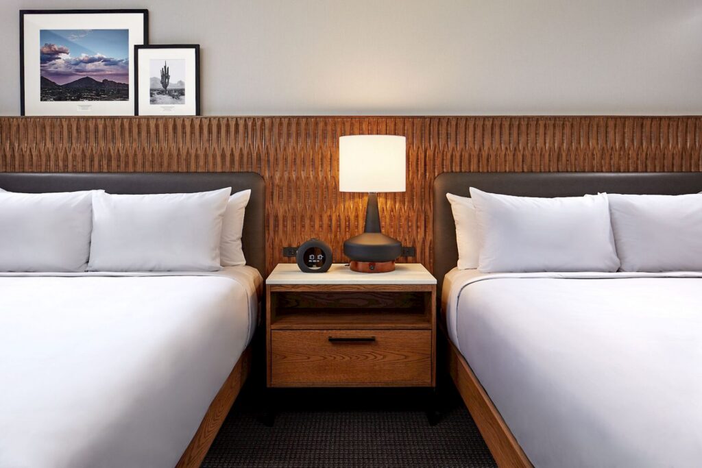 Each room features an innovative desert-modern-inspired design, bringing a taste of the Sonoran Desert inside. Warm and calming colours create a soothing vibe. Each room offers a Hilton signature Suite Dreams mattress, Nesspresso coffee-maker, mini-refrigerator, 65″ flat screen television and D.S. & Durga bathroom amenities. Suites are also available offering additional living space, upgraded amenities, and pull-out sofa beds.