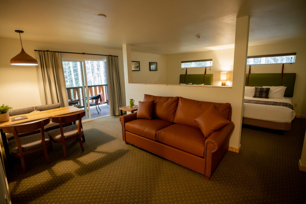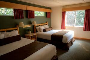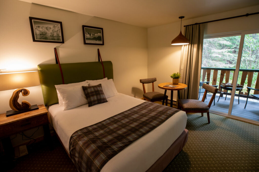 This comfortable Alaskan lodge offers 180 guestrooms and suites, spread among fifteen two-story buildings (please note there are no elevators). All rooms include flat screen television, private bathroom and mini fridge. Standard rooms accommodate up to four guests, offering two queen beds and feature Alaska-style log furniture. There is also the option to have an outdoor balcony or deck. Upgraded rooms include Premium Room with deck and Premium Suite with deck, the latter benefitting from a small living area.