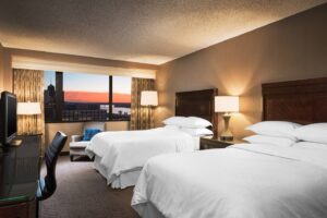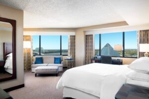 The large, intuitively designed guestrooms and suites boast wonderful views of the Memphis skyline or the Mississippi River. Each room is beautifully furnished with light woods and bold palettes. An abundance of amenities feature in all rooms, including flat-screen televisions, WiFi, Sheraton Sweet Sleeper Beds and exclusive Shine for Sheraton bathroom amenities. For the ultimate indulgence, consider the wide selection of suites on offer.