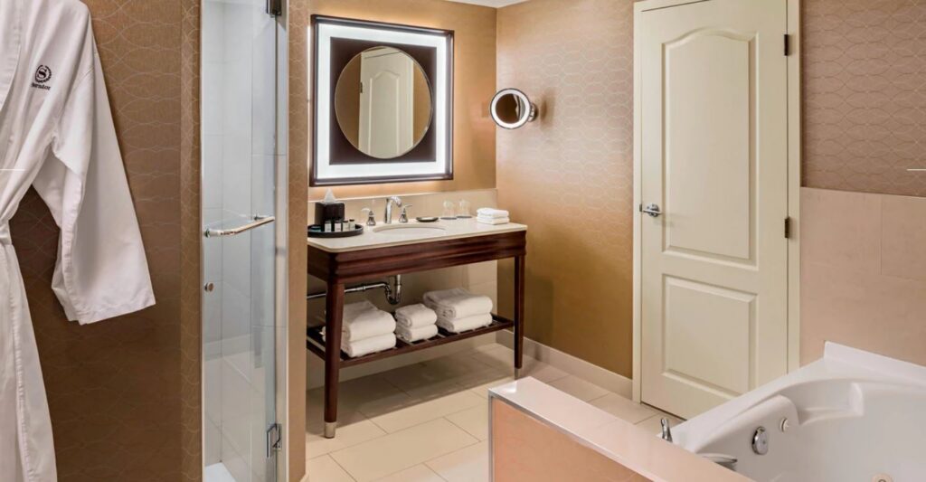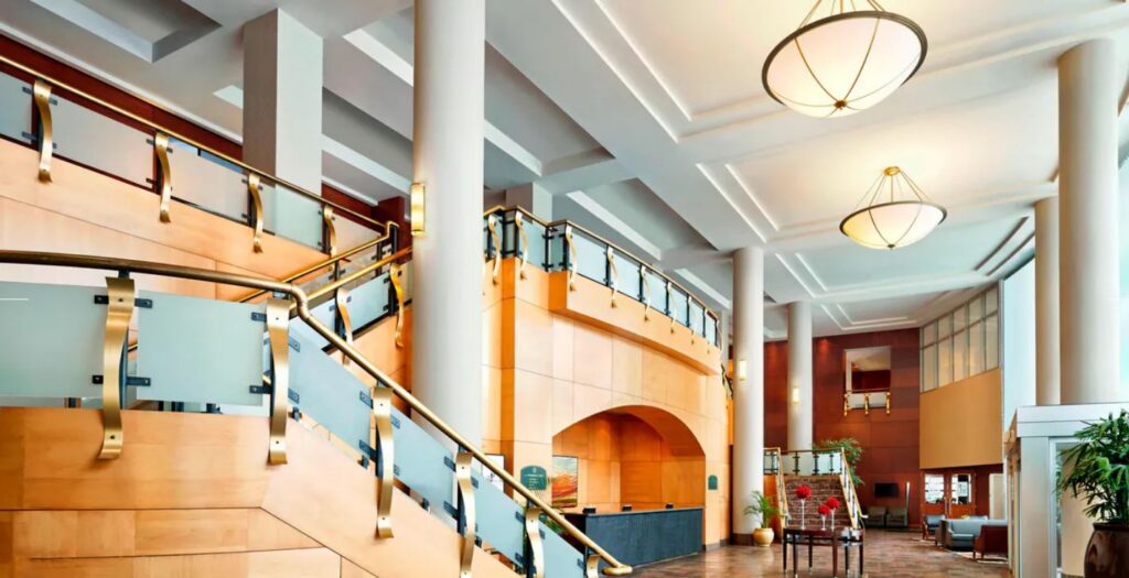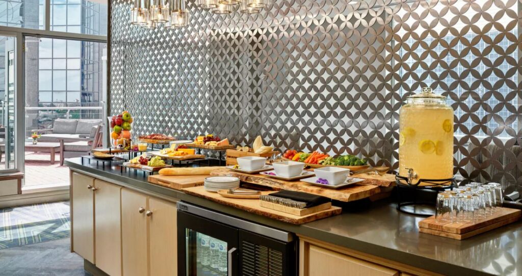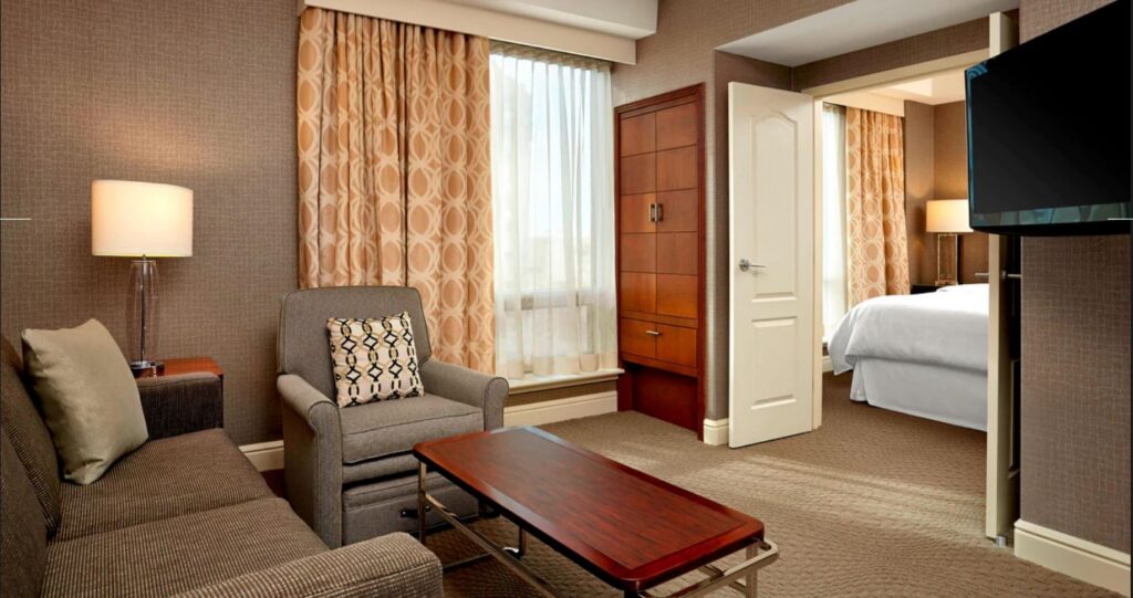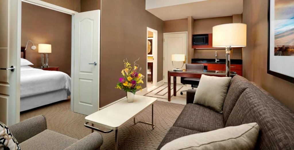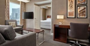 This all-suite hotel offers comfortable stays in contemporary surroundings. Thoughtfully designed and tastefully furnished, the spacious suites provide a welcome retreat after a day exploring, where floor-to-ceiling windows, relaxing seating and comfortable bedding await. There are a range of one and two bedroom suites, featuring king beds or two queens, flat screen televsions, iPod docking stations, coffee makers, mini-fridges and microwaves. Club level suites have the added benefit of access to a Club Lounge.