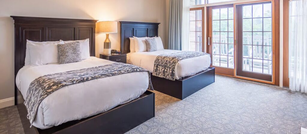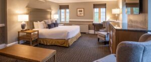 Skytop is a visually stunning Dutch Colonial lodge offering a wide choice of accommodation options. The grand, historic lodge boasts 125 country-style guestrooms offering spectacular views of the Pocono Mountains or lake. The Inn houses 20 luxurious rooms, each with fireplace, refrigerator, and private balcony overlooking the golf course and features its own lobby and fire-lit cocktail lounge. Families, groups and those looking for a quieter local will love the serence privacy of the deluxe 4 bedroom cottages.