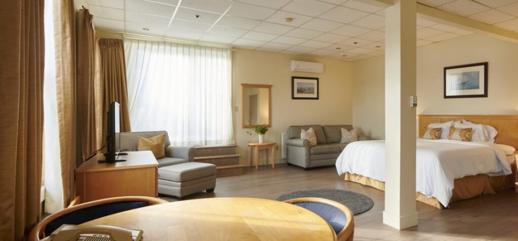 The guestrooms at Smugglers Cove Inn, Lunenburg, ooze comfort and charm, providing guests with a peaceful retreat in the heart of this historic maritime town. Each room is thoughtfully appointed with modern amenities and tasteful decor, ensuring a relaxing and enjoyable stay. Designed with guest comfort in mind, the rooms feature cosy furnishings, plush bedding, and elegant touches that reflect the inn’s coastal heritage. Guests can unwind in style with amenities such as flat-screen TVs, complimentary Wi-Fi, and coffee makers. Many guestrooms offer scenic views of the charming streets of Lunenburg or glimpses of the picturesque waterfront.