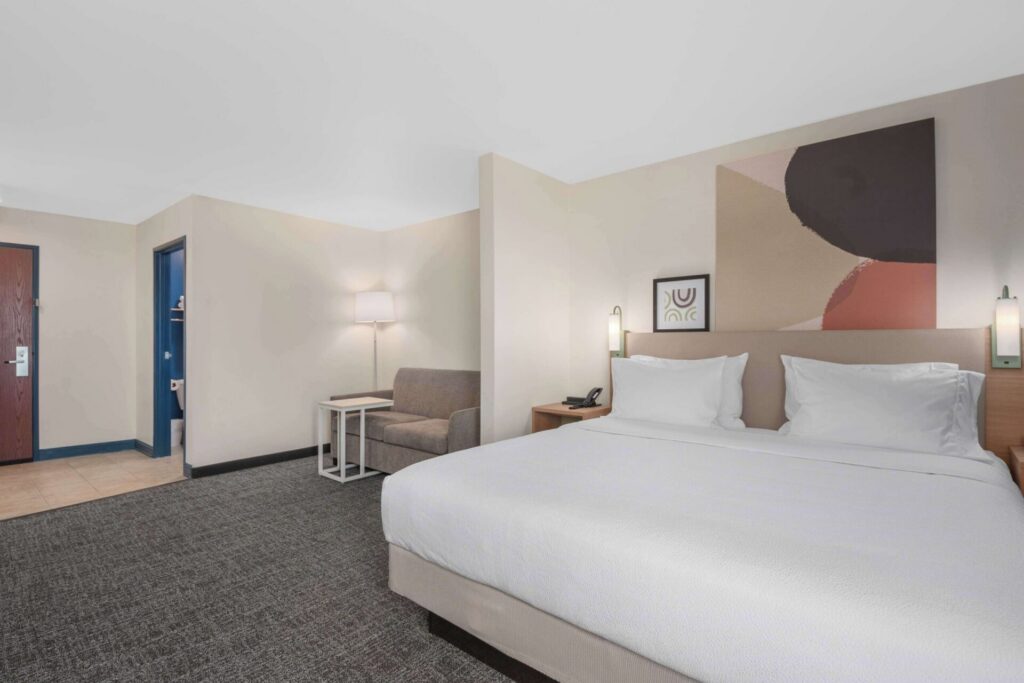 Spark by Hilton Minot offers 80 well-appointed guestrooms, thoughtfully designed with a clean, modern aesthetic that emphasises comfort and simplicity. The decor features a neutral colour palette with warm accents, creating a fresh and inviting atmosphere that appeals to a wide range of guests. Each room includes plush bedding, premium linens, and air conditioning to ensure a restful stay. Amenities such as complimentary Wi-Fi, a refrigerator, a microwave, and a flat-screen TV complete each room perfectly. A small selection of suites are also available, offering additional living space, perfect for larger families.