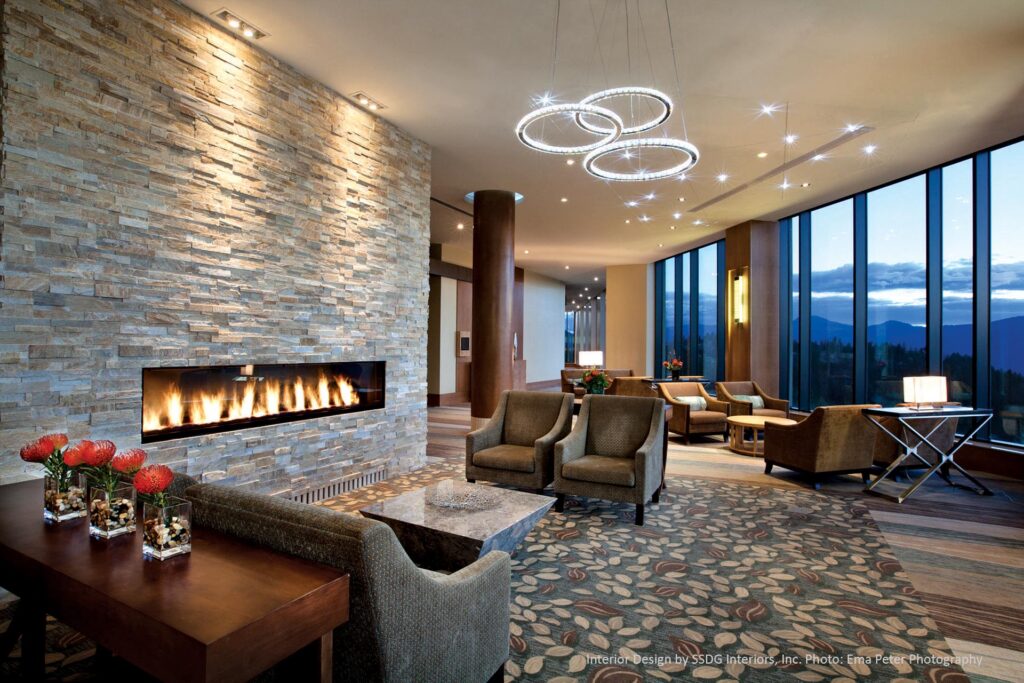 Swarovski Crystal infused, Sparkling Hill Resort features 152 guestrooms and suites, all with floor to ceiling sliding glass window walls which offer magnificent views of the water, mountains or grassland. In addition to the exquisite furnishings, each room embraces crystal elements and features a crystal glass fireplace, two-person bath with starry crystal sky and a walk through shower.