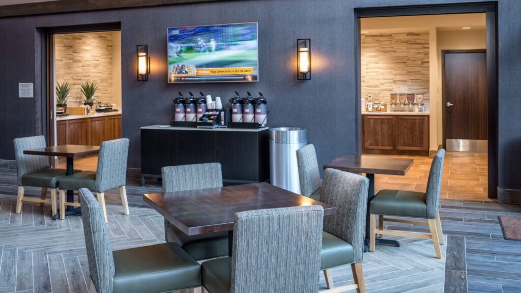 This all-suite hotel combines comfort with contemporary design, providing a welcoming retreat for travellers. Each suite is carefully furnished with modern decor highlighted by bright accents and stylish furnishings. Amenities include spacious work areas, luxurious bedding, and separate living spaces featuring comfortable seating, perfect for unwinding after a day of exploration. Guests also benefit from modern conveniences such as flat-screen televisions, complimentary Wi-Fi, coffee makers, mini-refrigerators, microwaves, and elegantly appointed bathrooms stocked with Paul Mitchell toiletries.