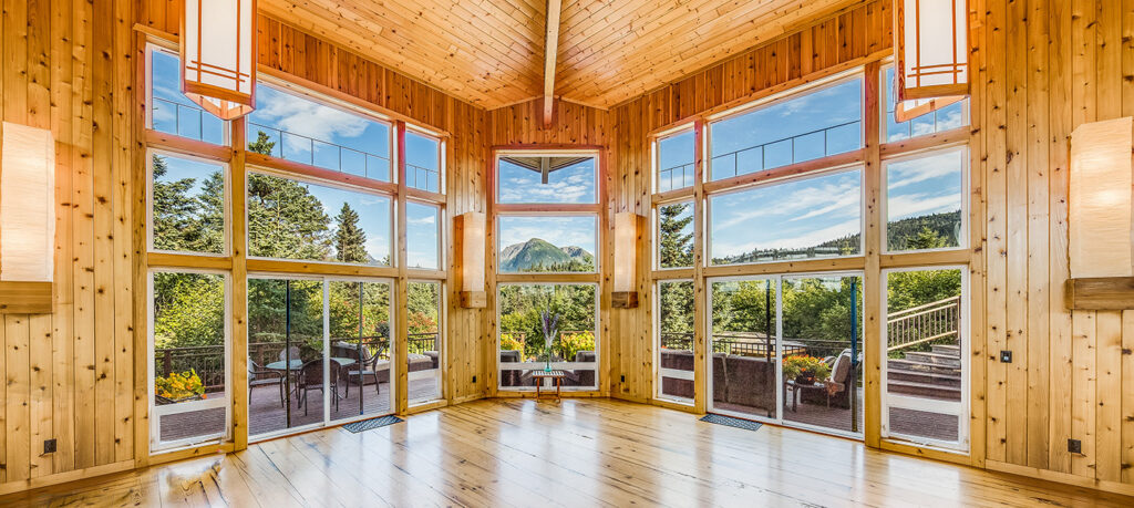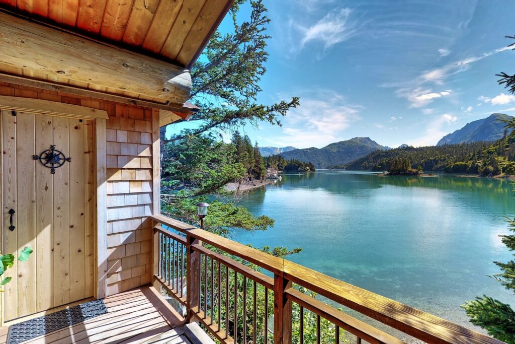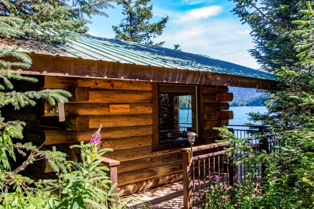 One-Bedroom Deluxe Cabin – A private cabin with waterfront and mountain views. Watch the otters swim by as the tide comes and goes or relax on your covered deck and enjoy your morning coffee listening to the stillness. One king bed and private attached heated bathroom with shower. Sleeps up to 2 guests.