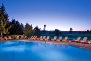 Nestled in the heart of Central Oregon's stunning landscape, Sunriver Resort offers a captivating retreat surrounded by natural beauty. Situated along the Deschutes River and encompassing over 3,300 acres of pristine wilderness, the resort provides easy access to outdoor adventures year-round. From world-class golf courses to miles of hiking and biking trails, guests can explore the region's diverse terrain and scenic vistas. The nearby Cascade Mountains offer opportunities for skiing and snowboarding in the winter, while the charming town of Sunriver boasts shops, restaurants, and cultural attractions.