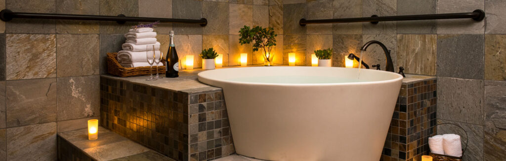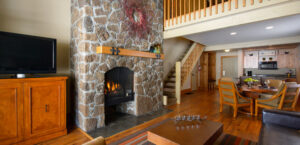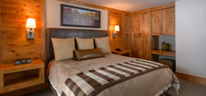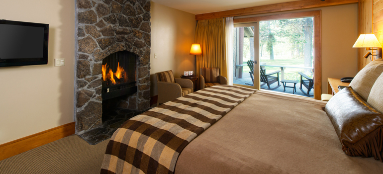 Northwest-style guestrooms and suites are located in two-storey buildings scattered throughout the grounds. They are casually elegant and feature Beautyrest pillow-top beds, a river rock wall gas fireplace, flat screen television, a Keurig coffee maker and a patio or balcony. Suites are also available offering additional living space and upgraded amenities.