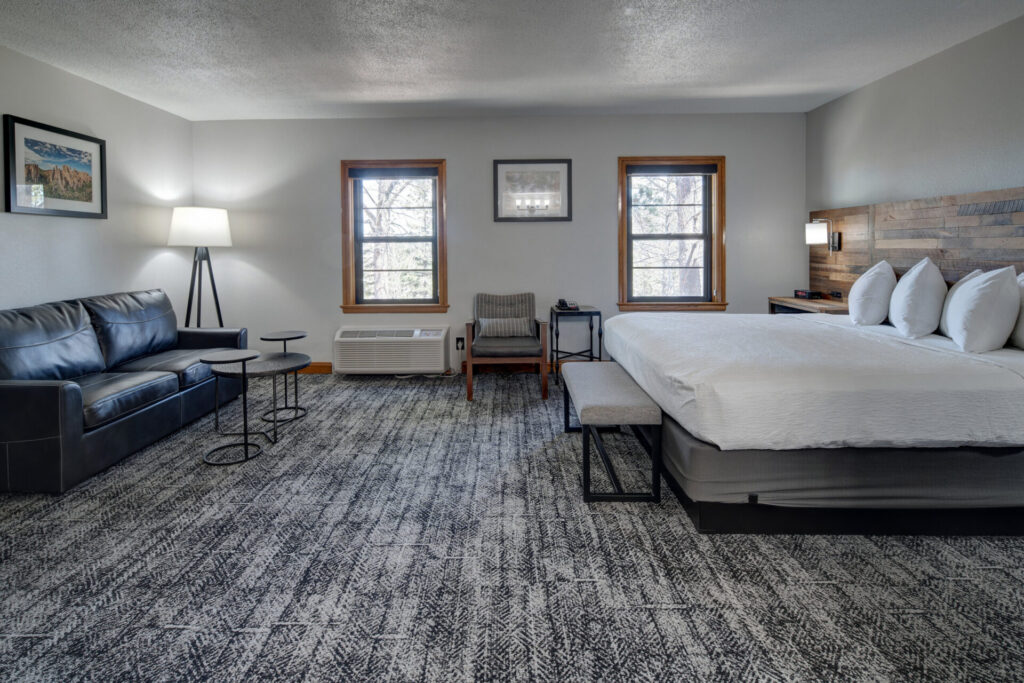Sylvan Lake Lodge is spectacularly located within the boundaries of Custer State Park, South Dakota’s largest and most iconic state park, encompassing over 71,000 acres of protected wilderness. The lodge overlooks the stunning Sylvan Lake, often referred to as the “Crown Jewel” of the park. Positioned at over 6,100 feet in elevation, the lodge is surrounded by dramatic granite spires, pine forests, and pristine mountain scenery. From this serene base, guests have immediate access to some of the park’s most celebrated outdoor attractions, including Cathedral Spires, Sunday Gulch Trail, and the trailhead to Black Elk Peak, the highest point in South Dakota.
