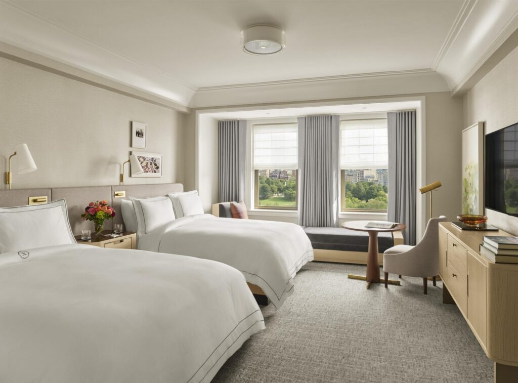 Heritage architecture and residential comfort define each guestroom at The Newbury, all rooms and suites are adorned with handcrafted woods, and marble touches as well as plush imported linens, feather duvets, and pampering bathroom amenities. Guests choosing suite accommodation have the added luxury of additional living space and upgraded amenities.