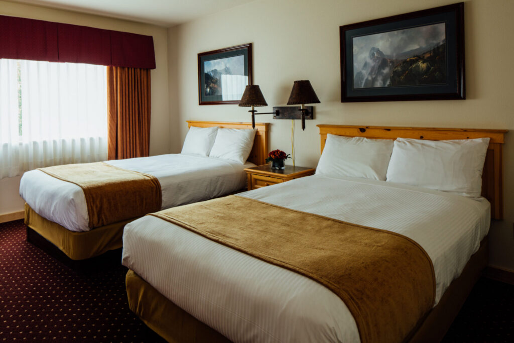 The Talkeetna Alaskan Lodge features a total of 212 guestrooms. There are 3 mountain side suites, 78 main lodge mountain view rooms, 71 main lodge standard view rooms, and 60 rooms in the guest lodge building. All rooms feature a king or queen-sized bed, full private bath, hair dryer, coffee maker, refrigerator, flat-screen television, and complimentary Wi-Fi. Upgrade to one of the suites and enjoy a jacuzzi or walk-in shower, and gas fireplace with incredible views of Denali.