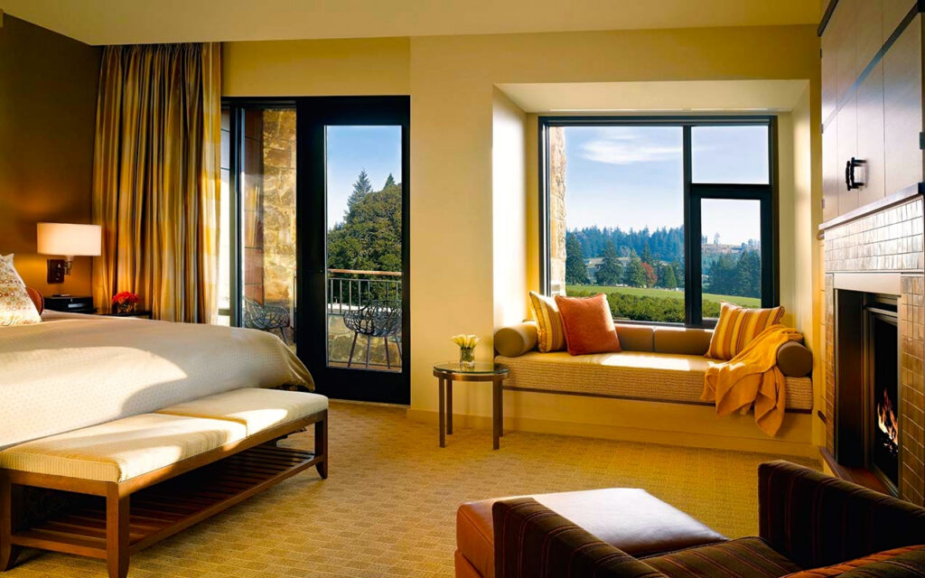 Located in Newberg, in the heart of the Willamette Valley Wine Region and just an hour southeast of Portland, The Allison Inn & Spa is a boutique-style retreat. Surrounded by snowcapped mountains, rolling hills, working vineyards, and fertile farmlands, it offers a serene escape into nature. Explore over 200 nearby wineries or wander along footpaths that wind through beautifully landscaped gardens