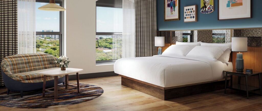 The guestrooms at the Bankers Alley Hotel in Nashville are meticulously designed to offer comfort and sophistication. Each room boasts contemporary furnishings and modern amenities to ensure an enjoyable experience. Guests can indulge in high-speed Wi-Fi, flat-screen HD televisions, plush bedding, and well-appointed bathrooms stocked with premium toiletries. For those seeking enhanced views, select rooms feature terraces overlooking Nashville. Additionally, the hotel offers suites that provide extra living space and upgraded amenities.
