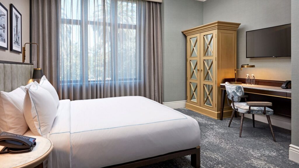 This exceptional boutique hotel, located in the heart of downtown Sacramento, seamlessly blends old-world charm with contemporary comforts. Guests are greeted by a distinctive ambience that combines timeless elegance with modern-day amenities, creating a truly unique and inviting experience. With its prime location, the hotel provides convenient access to the city’s vibrant cultural attractions, fine dining, and historic landmarks.