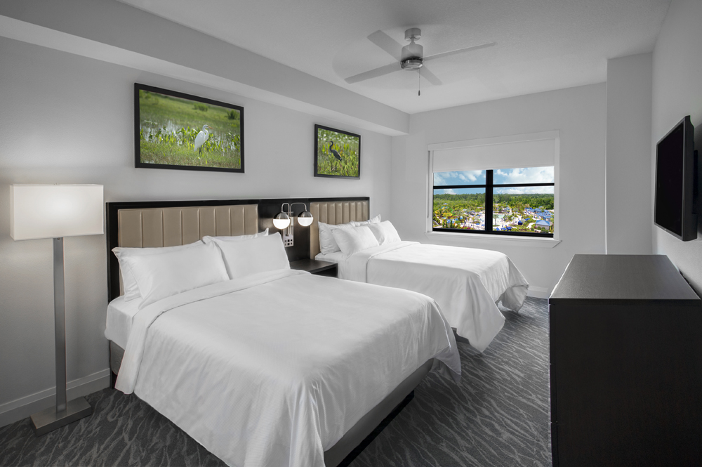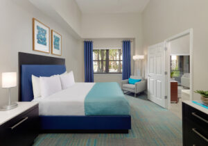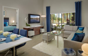 The Grove Resort & Water Park is an all-suite resort, making it ideal for families and longer stays. Choose a one, two or three bedroom, residential-style guest suite. Each suite features a full kitchen, boasting stainless steel appliances, granite counter tops, and a utility area containing washing and drying facilities. In addition, expect a living and dining area, and a screened balcony. Modern, upscale furnishings and décor make The Grove a wonderful choice for an Orlando stay.