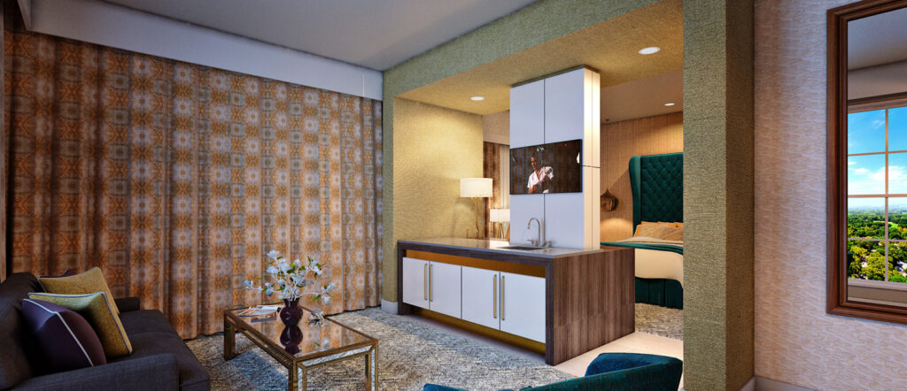 The Guest House at Graceland has been inspired by the warm hospitality that Elvis always showed his guests. From the southern colonial exterior and richly decorated restaurants and bars to the specialty suites; many of which have designs overseen by Priscilla Presley herself, every aspect of The Guest House in some way reflects the unique character of Graceland. Every guestroom and suite features a DreamCatcher Simmons Beautyrest bed, flat-screen television, Keurig coffee-maker, and state-of-the-art, Bluetooth media hub