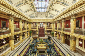 Offering elegant yet comfortable guestrooms and suites, the Jefferson’s accommodations are reminiscent of an upscale downtown apartment – right down to the doorbell. The large spaces are enhanced by rich fabrics, fine craftsmanship and unexpected details. Welcoming guest room foyers with live plants, spacious dressing areas and beautiful marbled baths complete the residential feel given to each room. Each guestroom features modern amenities, including flatscreen televisions, mini bars, coffee makers and complimentary WiFi, along with more luxurious touches such as luxury bed and bath linens, plush bathrobes, plentiful pillows and opulent bathroom products.