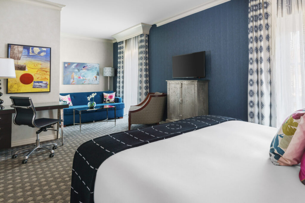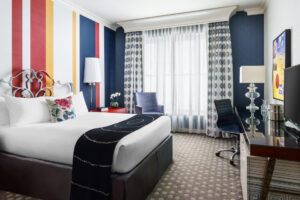 Guestrooms at the Marker, San Francisco are modern in design and full of San Franciso flair with quirky decor throughout. Splashes of colour and modern furnishings complete each room in style. Amenities include plush pillows with comfy linens, complimentary Wi-Fi and flat-screen television. There is a selection of suites and corner rooms available, offering additional living space and upgraded amenities.