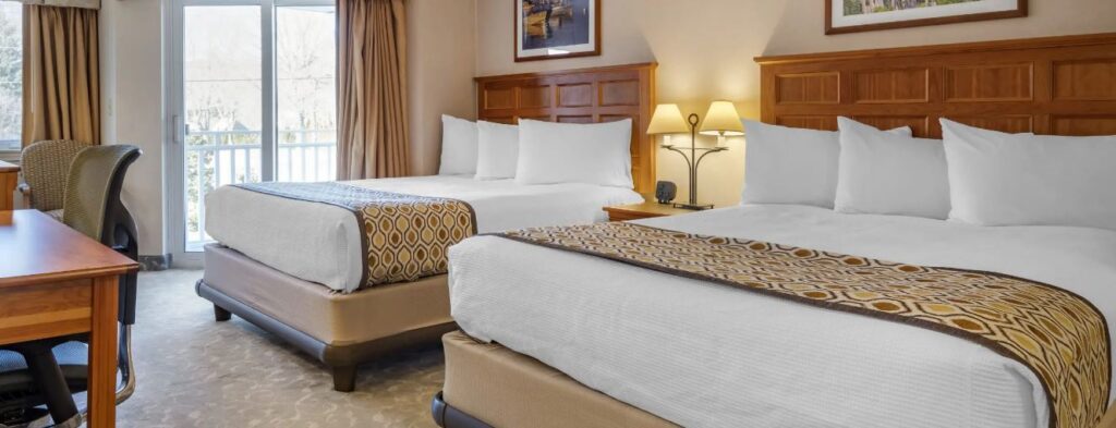 Guestrooms at the Meadowmere are comfortable and cosy with a warm colour palette running throughout each room giving you that perfect home-from-home feel. Amenities in each room include a king bed or two queen beds, complimentary Wi-Fi, flat-screen television, and individual climate control. Luxury and family suites are also available offering additional living space and upgraded amenities including a gas fireplace and private balcony.