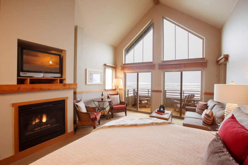 Every guestroom at The Ocean Lodge is thoughtfully designed for comfort and relaxation, featuring cosy gas fireplaces and, in select accommodations, Jacuzzis. Guests enjoy a full range of amenities, including complimentary  Wi-Fi, flat-screen televisions, plush robes, premium bath products, mini-refrigerators, microwaves, and coffee makers. Many rooms also offer private balconies or patios with stunning ocean views.