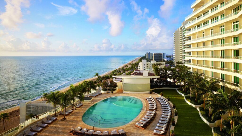This luxurious 24 storey resort property faces Fort Lauderdale’s fabulous beach. Soothing elegant decor and custom furnishings grace the guestrooms, with flat screen televisions and state-of-the-art entertainment systems in every room. Luxurious bathrooms feature flat screen televisions, European toiletries and plush bathrobes. Fine linens and sumptuous bedding provide a fabulous night’s sleep.