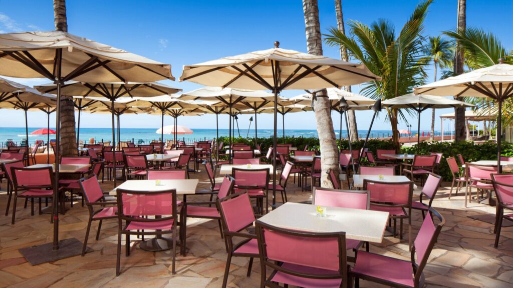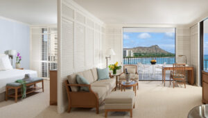 An historic property built in 1927, this luxury hotel evokes a relaxed Hawaiian atmosphere and is affectionately known as the Pink Palace of the Pacific. The Royal Hawaiian features 528 elegantly furnished guestrooms and suites. Base Earth palettes are enriched with vibrant splashes of colour, bold design wall prints, chocolate raffia headboards and sable stone bathrooms. Expect great room amenities including sumptuous bedding, flat screen televisions, plush bathrobes and bathroom amenities. There’s also a selection of spacious junior suites and one bedroom suites with upgraded amenities