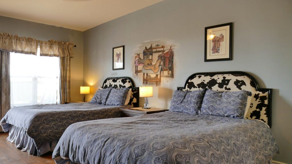 The ranch offers 17 unique guesthouses, each meticulously designed with a distinctive Wild West theme, such as the Marshal’s Office, the Grand Hotel, and the Post Office, among others. Each guesthouse is equipped with either a king-sized bed or two queen-sized beds, modern bathrooms, flat-screen televisions, complimentary Wi-Fi, and air conditioning. Additionally, junior and premium suites are available, providing extra living space and enhanced amenities, ideal for larger families.