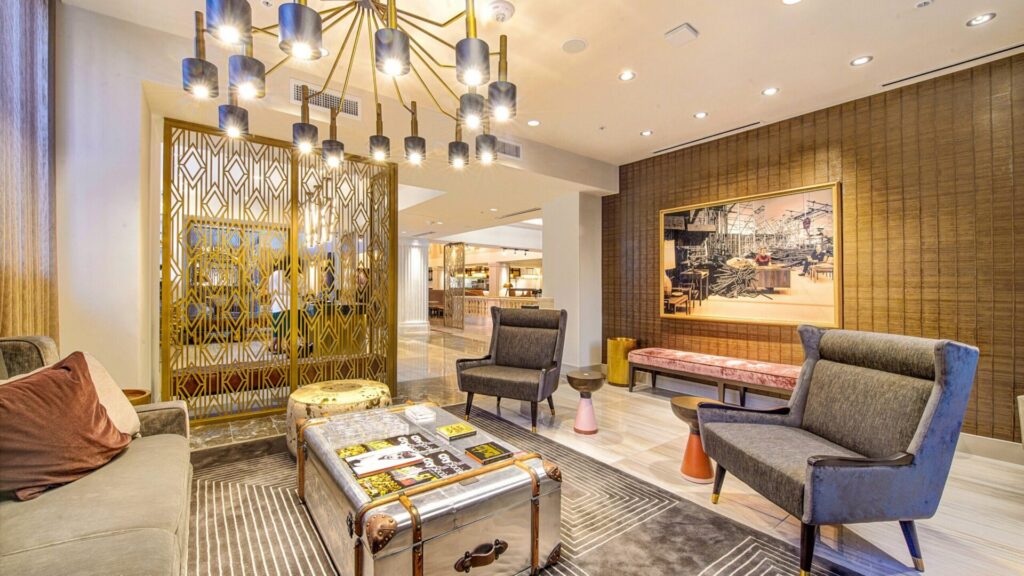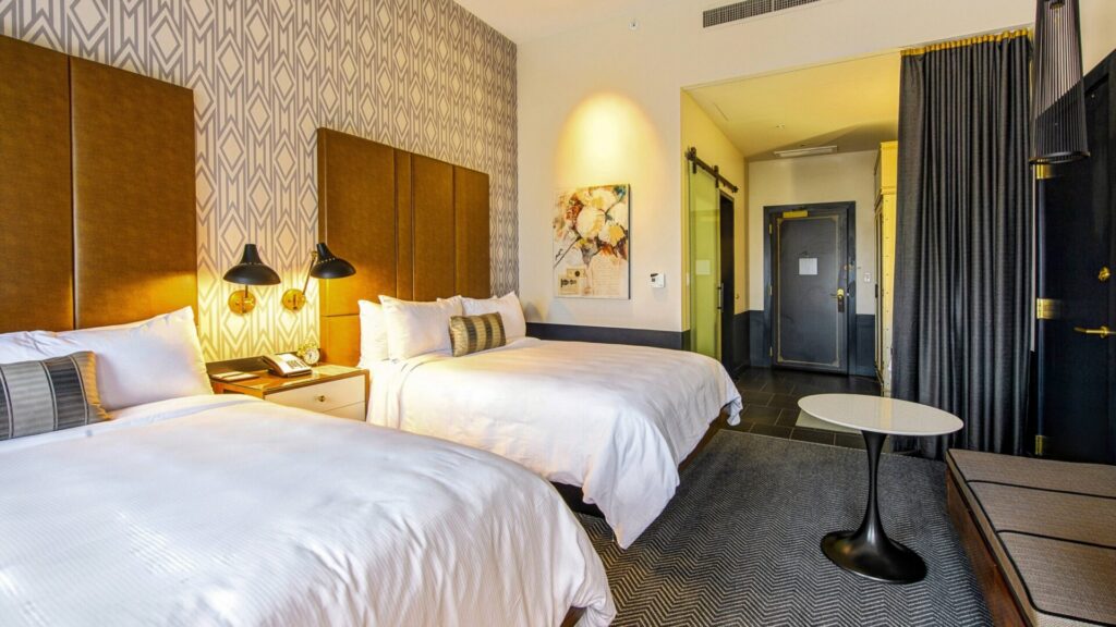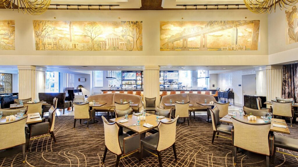 The guest rooms at Watermark are elegantly designed, blending comfort with modern conveniences. Each room features contemporary décor, ample lighting, scenic views, plush bedding, and generous relaxation space. Guests can enjoy amenities such as flat-screen TVs and large marble bathrooms stocked with premium toiletries. Select rooms offer picturesque views of downtown Baton Rouge.