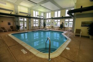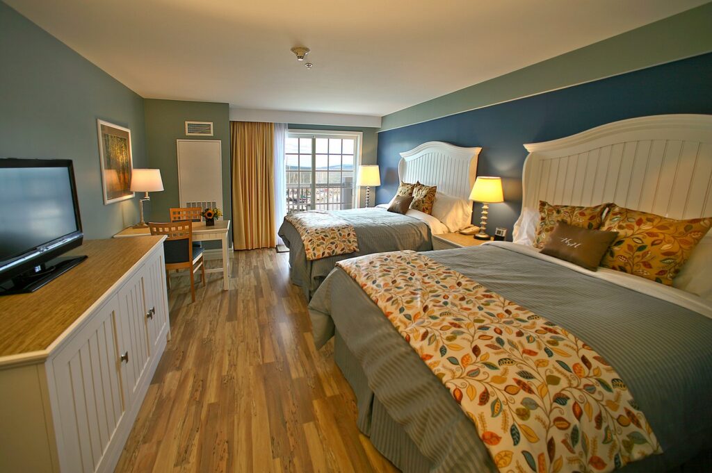 Each of the 107 spacious guestrooms and suites are beautifully appointed with many offering panoramic views of the lake from a private balcony. All rooms are adorned with wood floors, pillow-topped mattresses covered with 310 thread count linens and duvet covers, down feather pillows, plush bathrobes, complimentary Wi-Fi, a flat-screen television, coffee maker, and mini-refrigerators. The suites available offer additional living space and upgraded amenities.